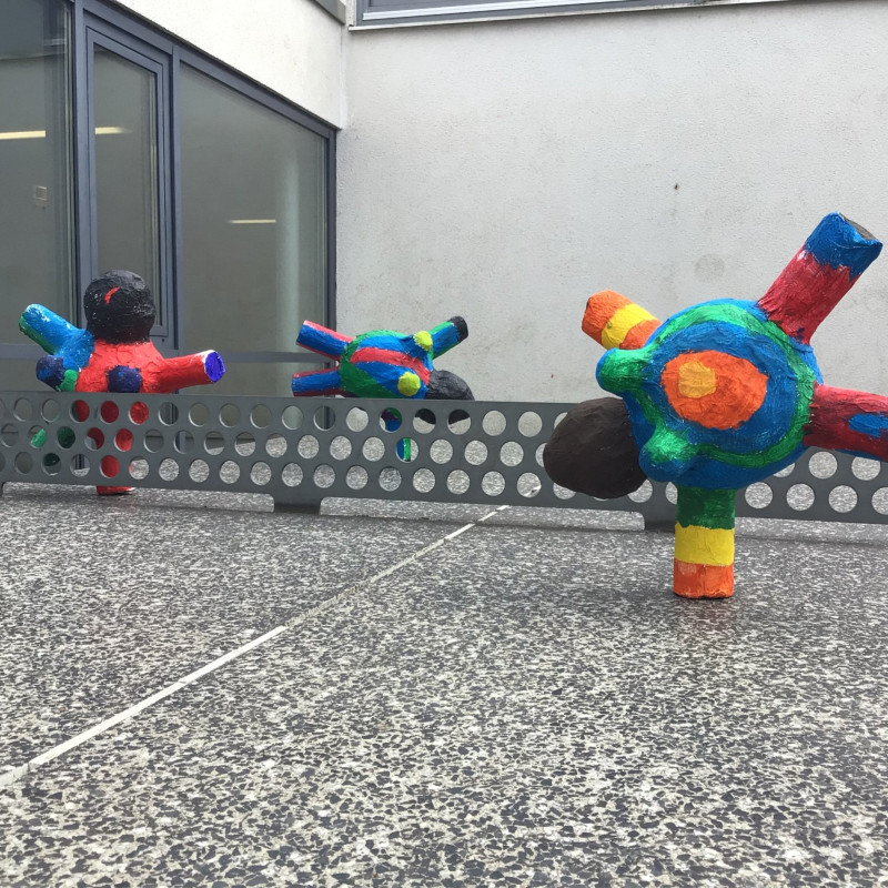 Die 6F hat sich im Kunstunterricht mit Kleister und Farbe am Modellieren von Nanas versucht und – wie wir finden – erfolgreich gemeistert. Die Nanas, Sophie, Charlotte und Caroline, der französischen Künstlerin und Ehrenbürgerin Hannovers Niki de Saint Phalle dienten der 6F als Vorlage. Einige unserer Elsa Nanas haben auch den Weg aus dem K-Trakt in die Pausenhalle oder auf den Pausenhof geschafft und sich die verrücktesten Plätze gesucht. Hier seht ihr einige der bunten Damen in Aktion.
