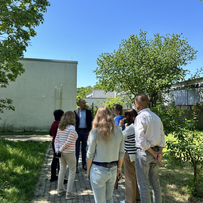 5 Dezernent:innen aus Gran Canaria durften wir bei kanarischen Wetterbedingungen an unserer Elsa begrüßen. Isabel Alegre, Víctor Guedes, Mely Díaz, Francisco Perdomo und Auxi Farias haben sich die Elsa angesehen und die Besonderheiten unserer Schule kennen gelernt. Neben der Besichtigung des Schulgeländes und einem regen Austausch über das deutsche und spanische Schulsystem standen ein Besuch im Spanischunterricht und der Orchesterprobe auf dem Programm. Das Programm begleiteten Frau Disque, Frau Heimbrock und Herr Kersten. Wir hoffen auf ein baldiges Wiedersehen und eine Stärkung unseres Erasmus+-Programms.