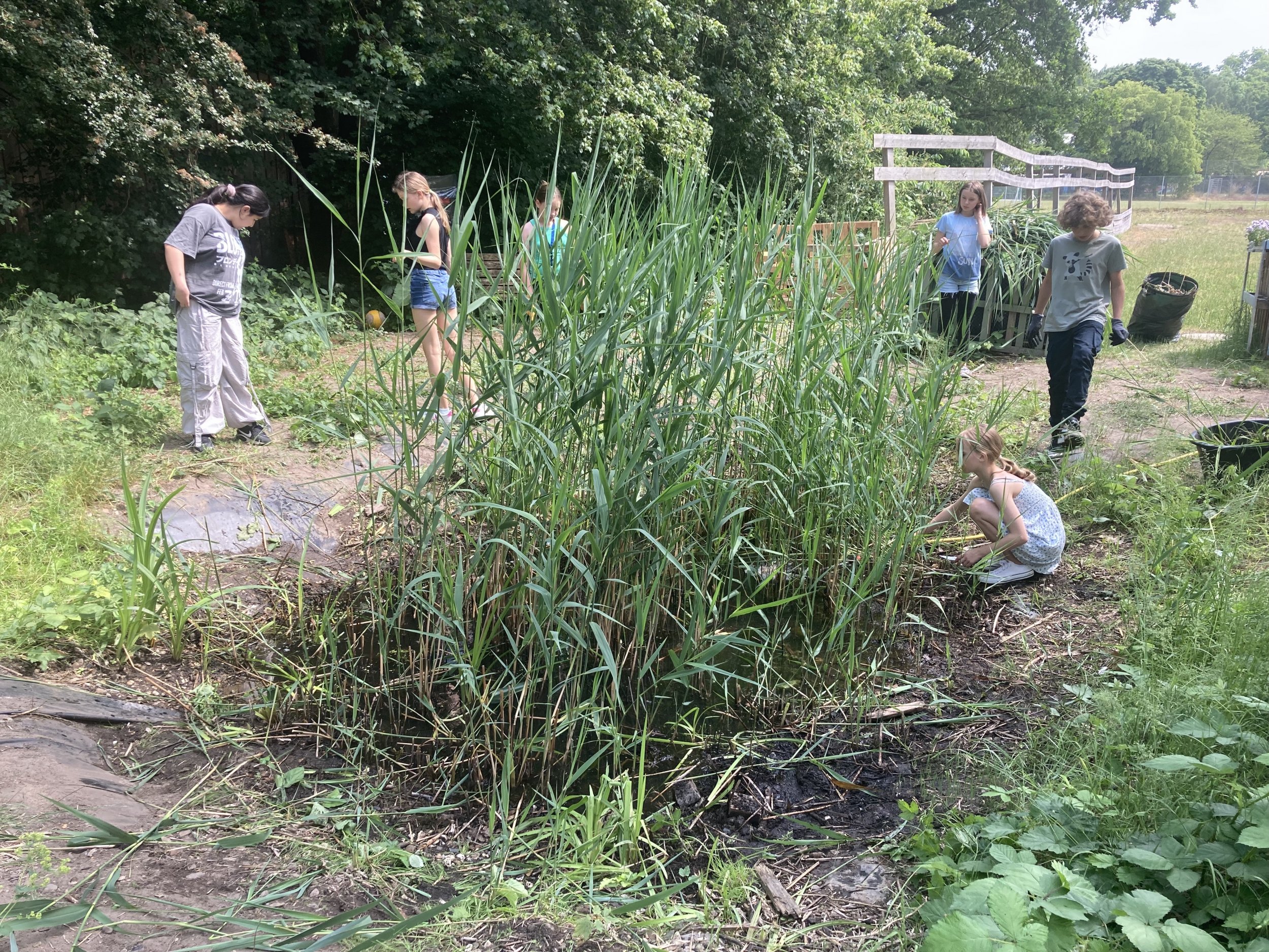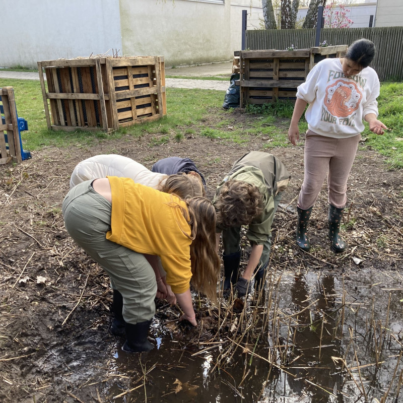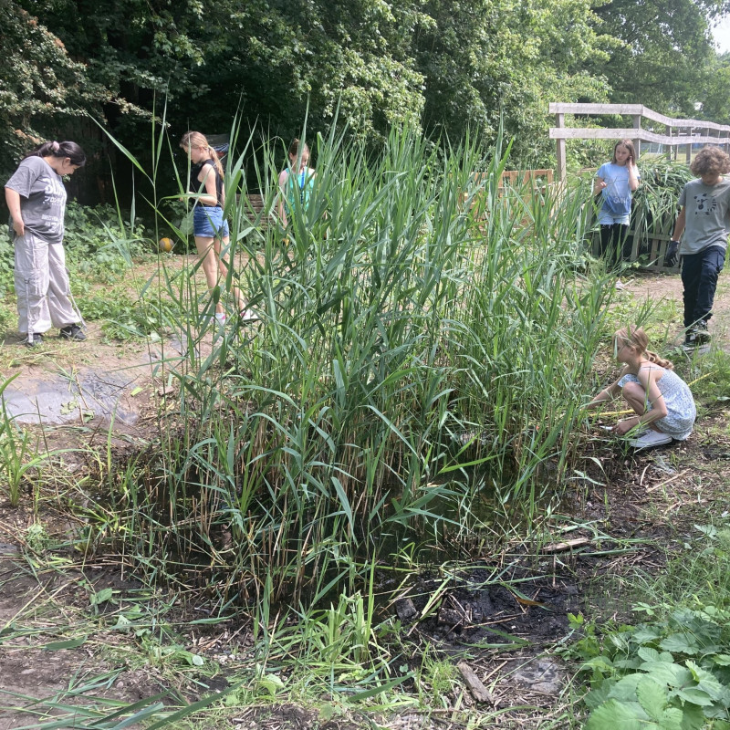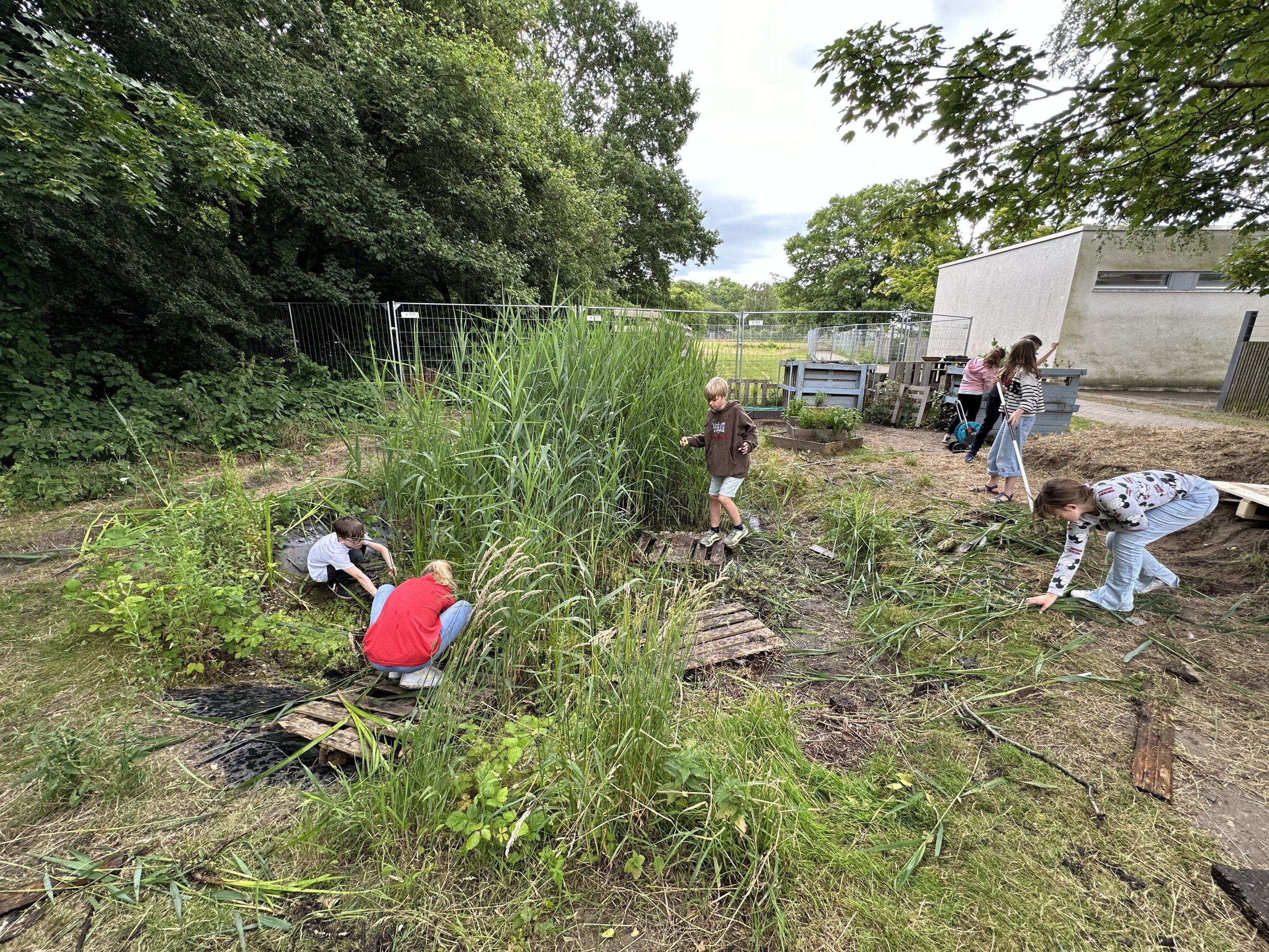 Die Umwelt-AG (hauptsächlich Bereich Schulgarten) sowie die Grünschnäbel-AG (hauptsächlich Bereich Teich) kümmern sich um die Aufrechterhaltung dieses wunderschönen Fleckchens. Im Teich leben viele verschiedene Tiere. Aktuell können ganz viele kleine Erdkröten beobachtet werden, die gerade ihre Entwicklung zur Kröte abgeschlossen haben und noch Schutz im Uferbereich des Teiches suchen. Dieses Jahr konnten sich sehr viele Erdkröten in unserem Teich entwickeln was zukünftig dazu führen wird, dass es wahrscheinlich sogar noch mehr werden. Denn Erdkröten versuchen zum Laichen immer wieder zurück zu dem Gewässer zu kommen, in dem sie auch selbst geschlüpft sind.