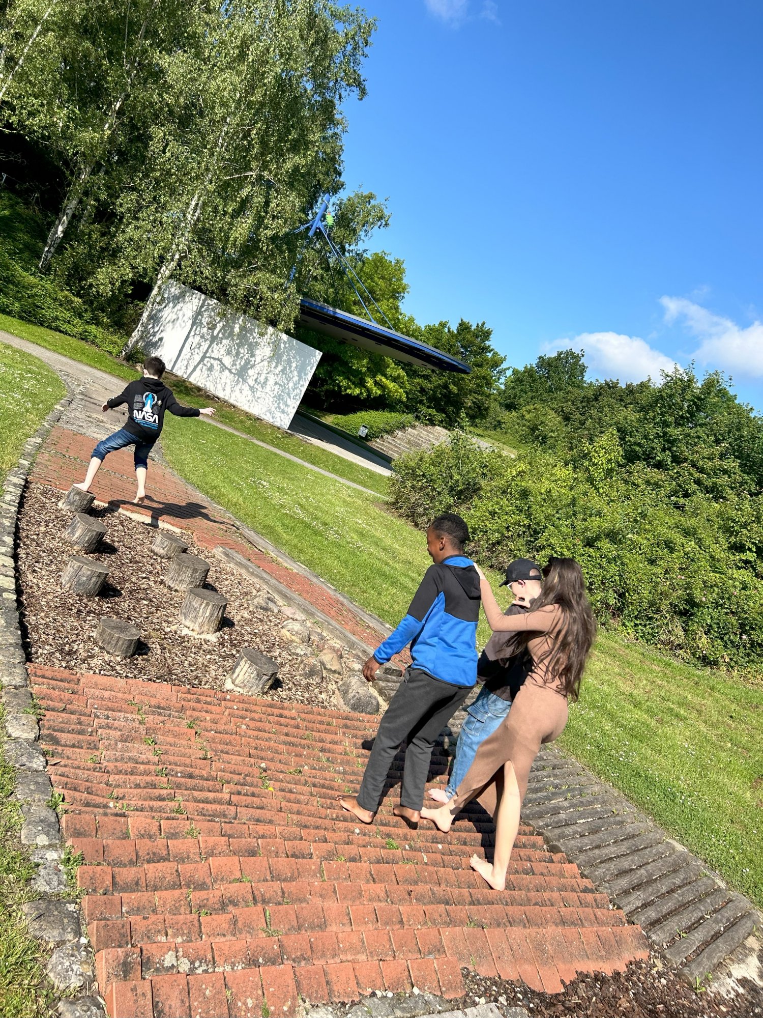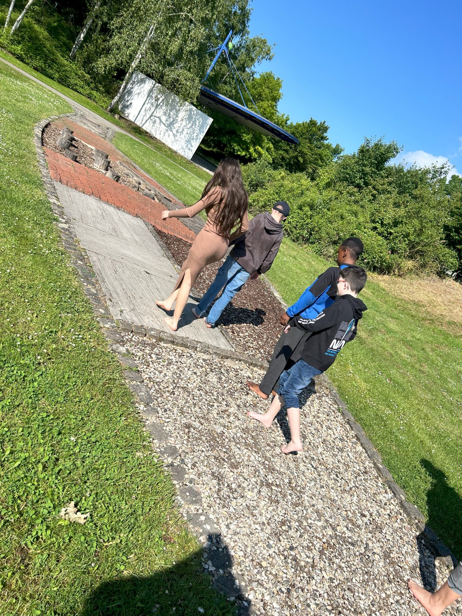 Ein weiteres beeindruckendes Ziel war der Park der Sinne in Hannover. Dieser einzigartige Erlebnispark bietet eine Vielzahl von Stationen, die alle Sinne ansprechen und den Forscherdrang der Kinder wecken. Unsere Schülerinnen und Schüler hatten die Gelegenheit, Naturphänomene hautnah zu erleben und mit allen Sinnen zu erforschen. Ob beim Barfußpfad, dem Klangspielplatz oder der Kräuterspirale – überall gab es Spannendes zu entdecken und zu erleben. Der Park der Sinne fördert das Verständnis für die Natur und regt dazu an, die Umwelt bewusst wahrzunehmen und zu schätzen.