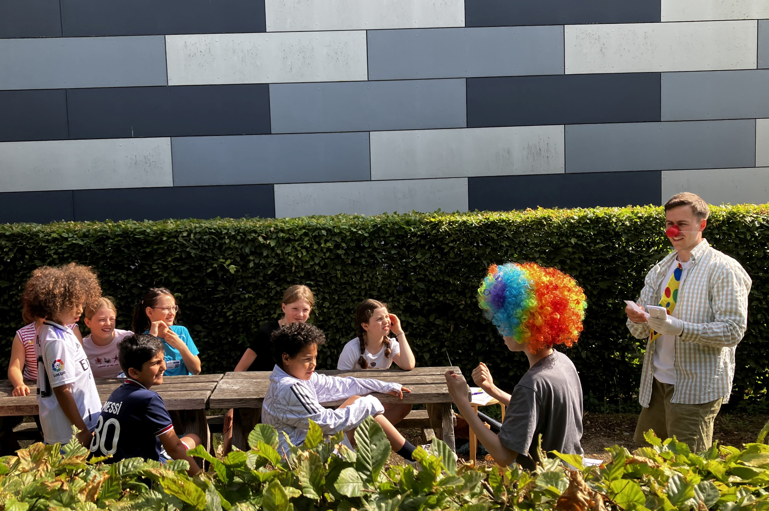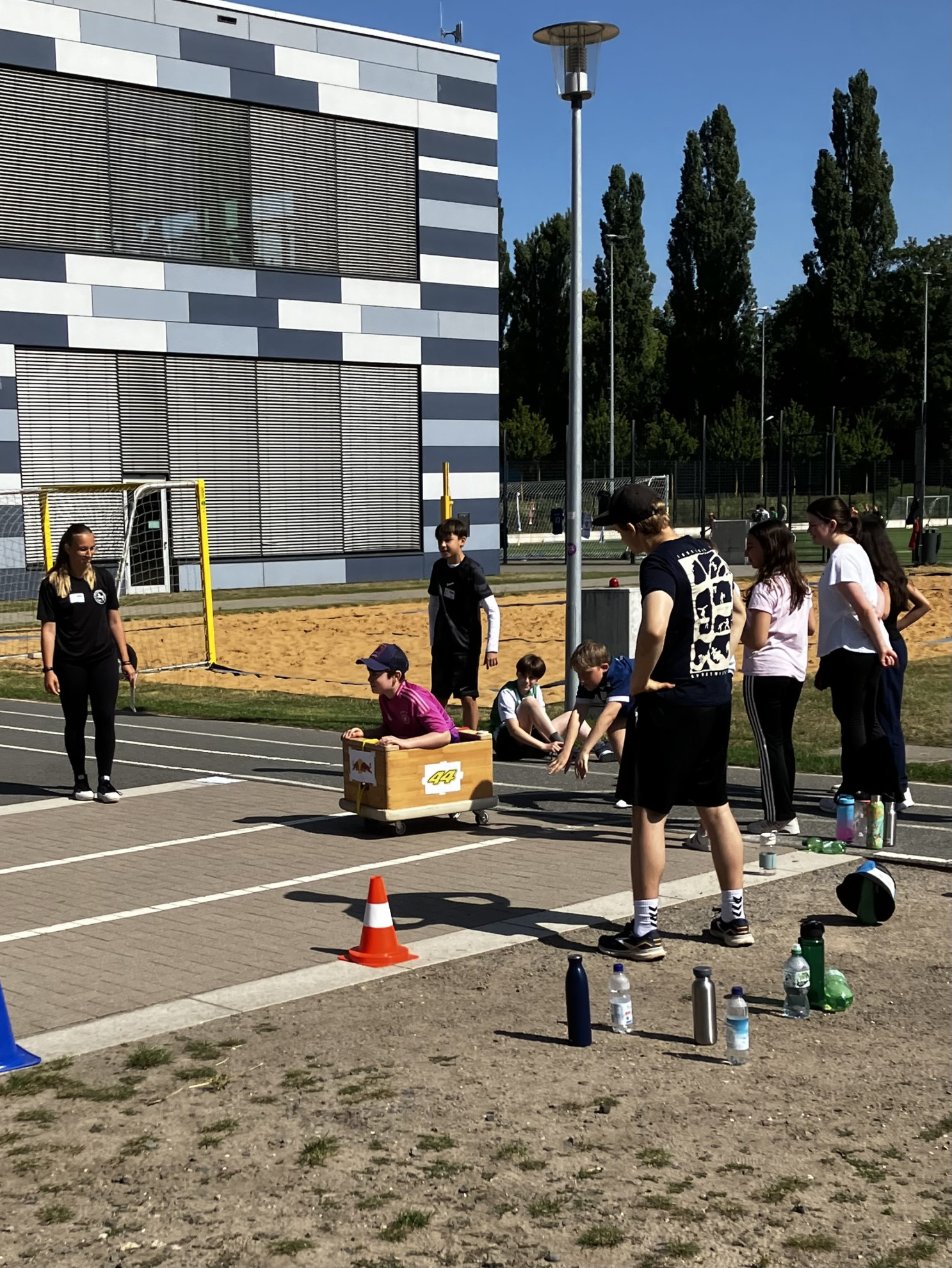 Sportstudierende hatten in einem Seminar 16 Herausforderungen für unsere Schülerinnen und Schüler geplant. Diese warteten auf dem Institutsgelände in den Bewegungswelten „Zirkus“, „Olympia“, „Klein gegen Groß“, „Champions League“ und „Formel 1“ auf die EBSler.