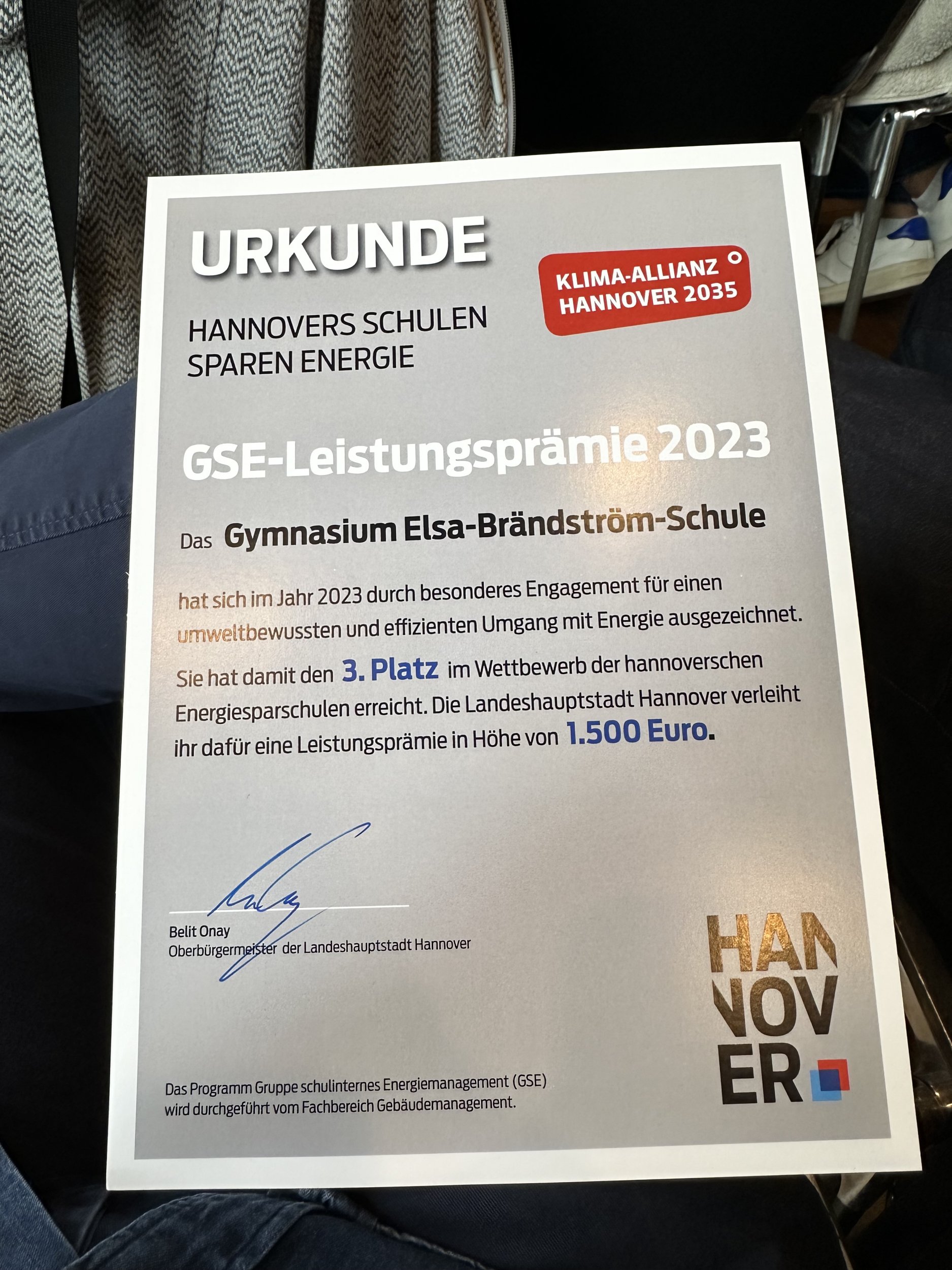Die Landeshauptstadt Hannover unterstützt Schulen seit 1994 beim Energiesparen. Die Elsa ist seit Jahren dabei und dieses Mal auf Platz 3 gelandet.