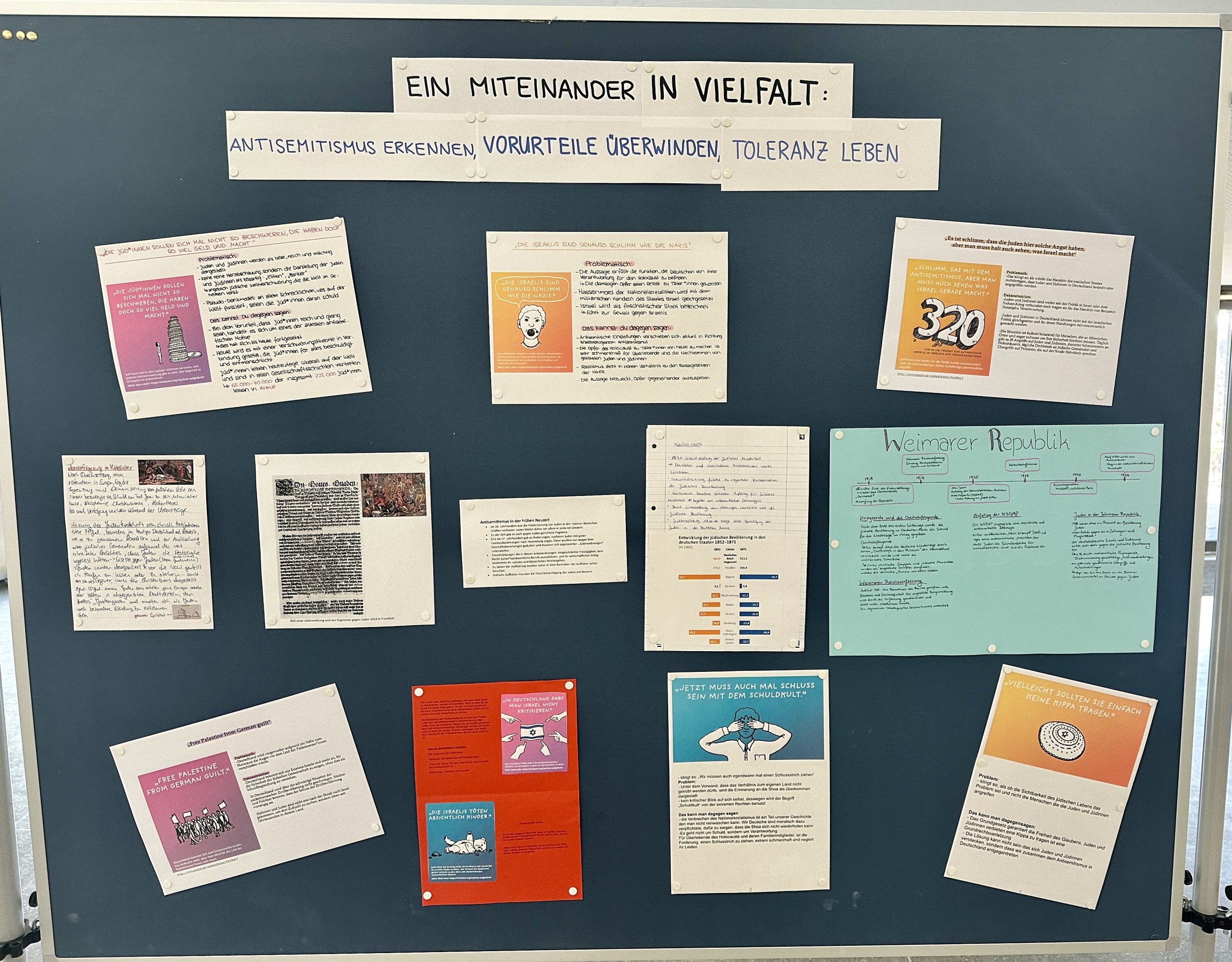 Anlässlich des „Internationalen Tages des Gedenkens an die Opfer des Holocaust“ am 27. Januar richteten wir in der 4. Kalenderwoche einen bewussten Blick auf den wieder erstarkten Antisemitismus in Deutschland. Im Zuge des Nahostkonflikts werden auch heute wieder Juden in Deutschland angefeindet. Neben der Betrachtung der historischen Entwicklung des Antisemitismus im Geschichtsunterricht beschäftigten sich die Schüler:innen auch in den Fächern Religion und Politik mit dem Judentum und den aktuellen politischen Entwicklungen in Deutschland.
