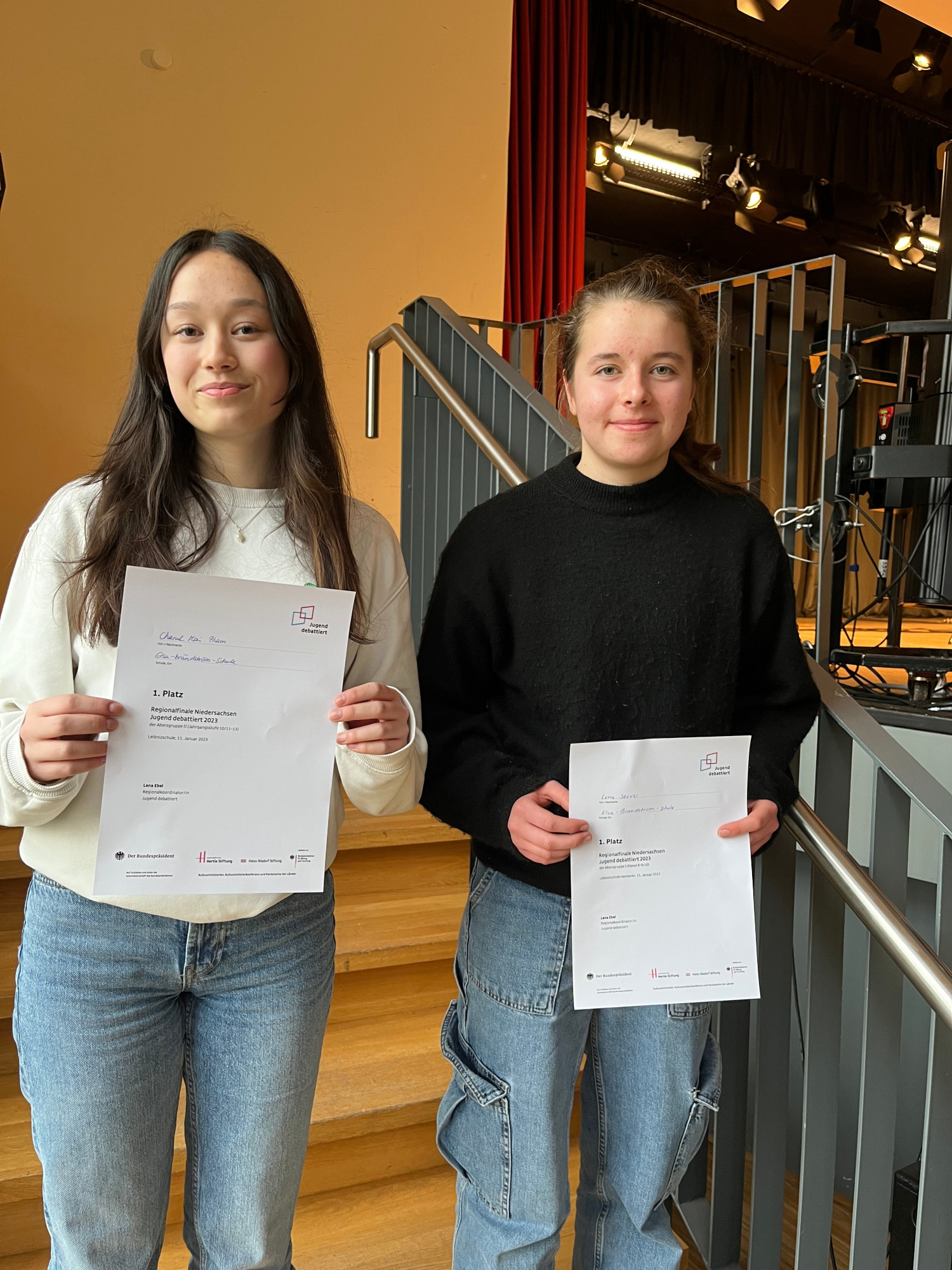 Lena Stöver und Chanel Mai Pham hatten sich im Januar beide für Landeswettbewerb "Jugend debattiert" qualifiziert und vertraten am 14. März 2023 den Verbund Hannover-Hildesheim. Nach der Begrüßung durch Kultusministerin Julia Willie Hamburg ging es nach einem straffen Zeitplan - und durch die langen Gänge des Verwaltungsgebäude des Niedersächsischen Landtages - zu den Debatten. Auch wenn es nicht für das Finale am Ende gereicht hat - die Elsa ist stolz auf euch! Wir freuen uns auf das nächste Jahr.
