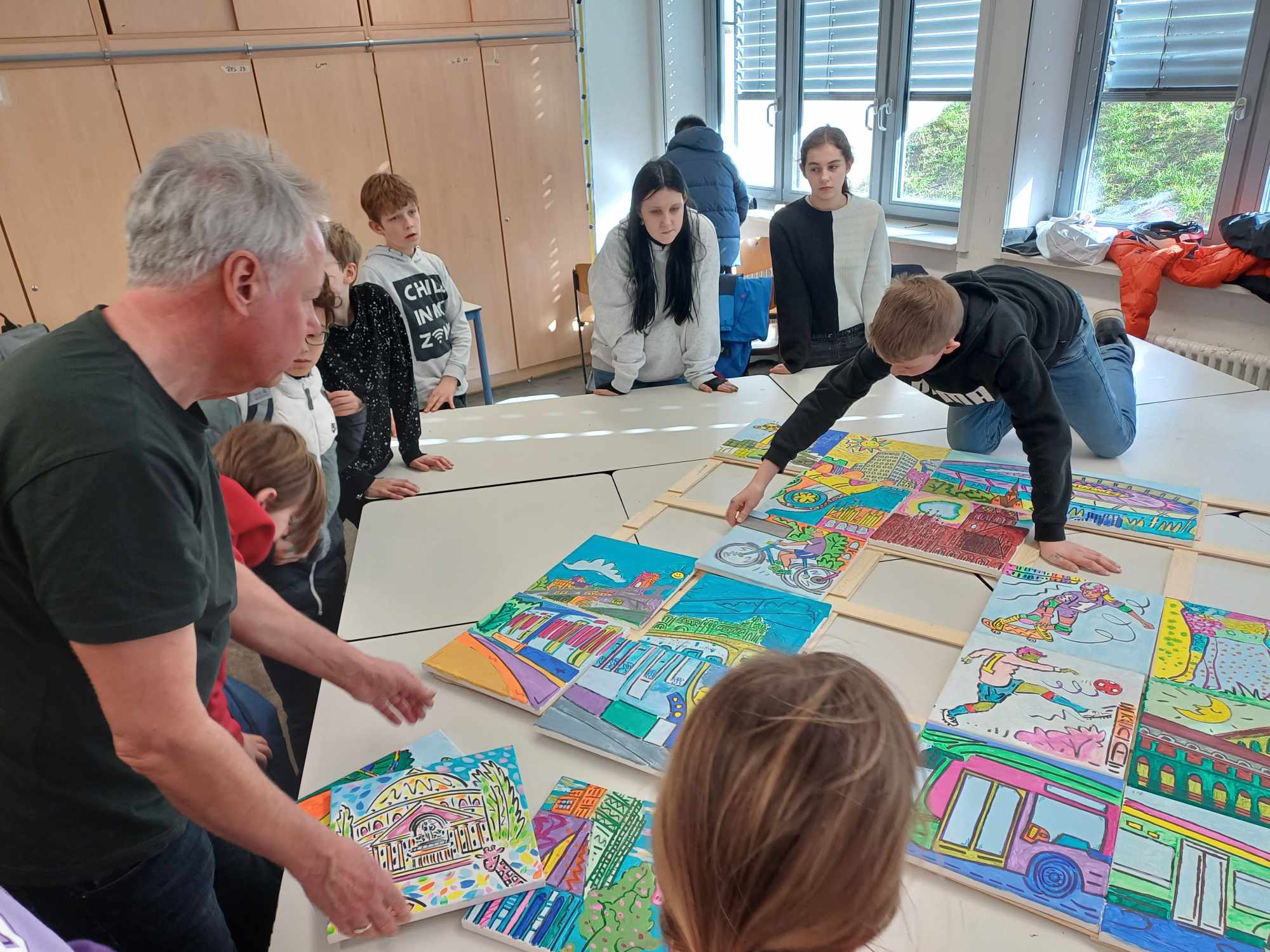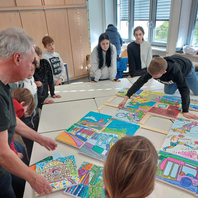 Etwas Spannendes, mit einem „echten“ Künstler im Kunstunterricht machen? Das war die Anfangsidee im Dezember 2023. Es folgten Ideenaustausch, Grübeln, Besorgungslisten schreiben und schließlich ein Großeinkauf im Künstlerbedarfshandel.