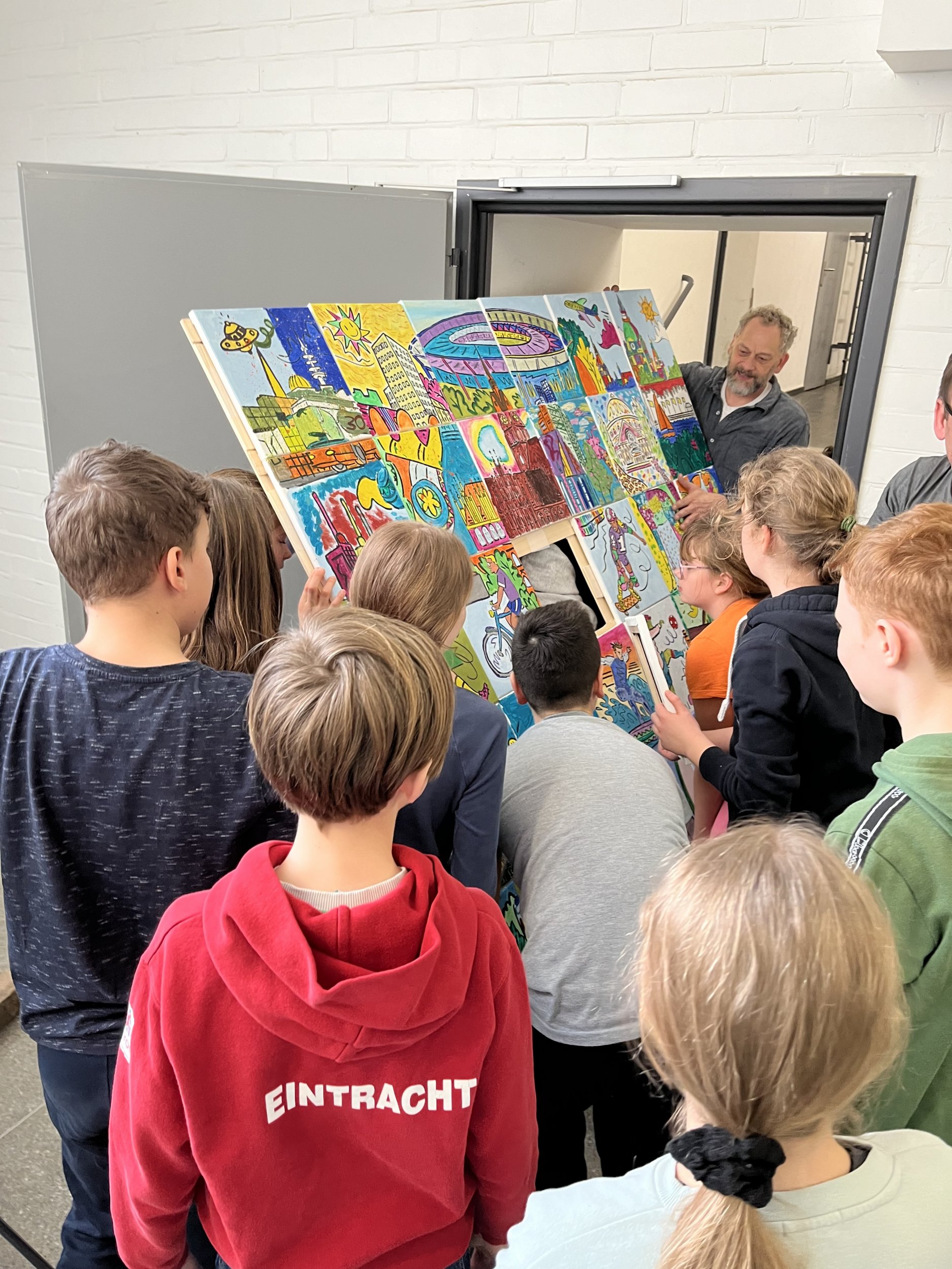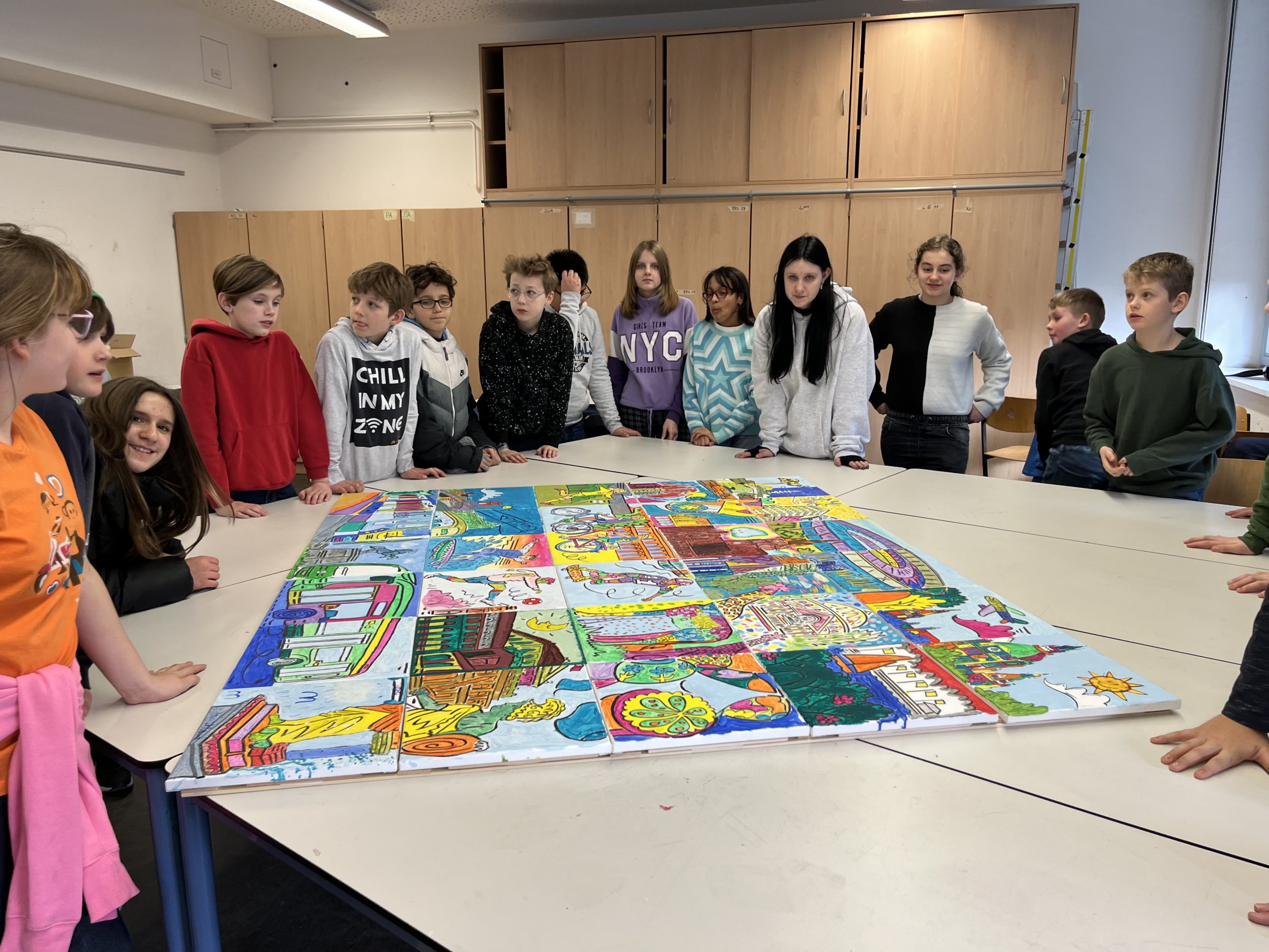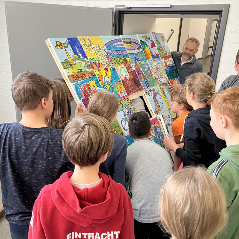 Ein Kunstprojekt mit einem “echten” Künstler? Diese Erfahrung machte die Klasse 6B im Februar diesen Jahres. Das Ergebnis ist in der Pausenhalle zu besichtigen und zu bestaunen.