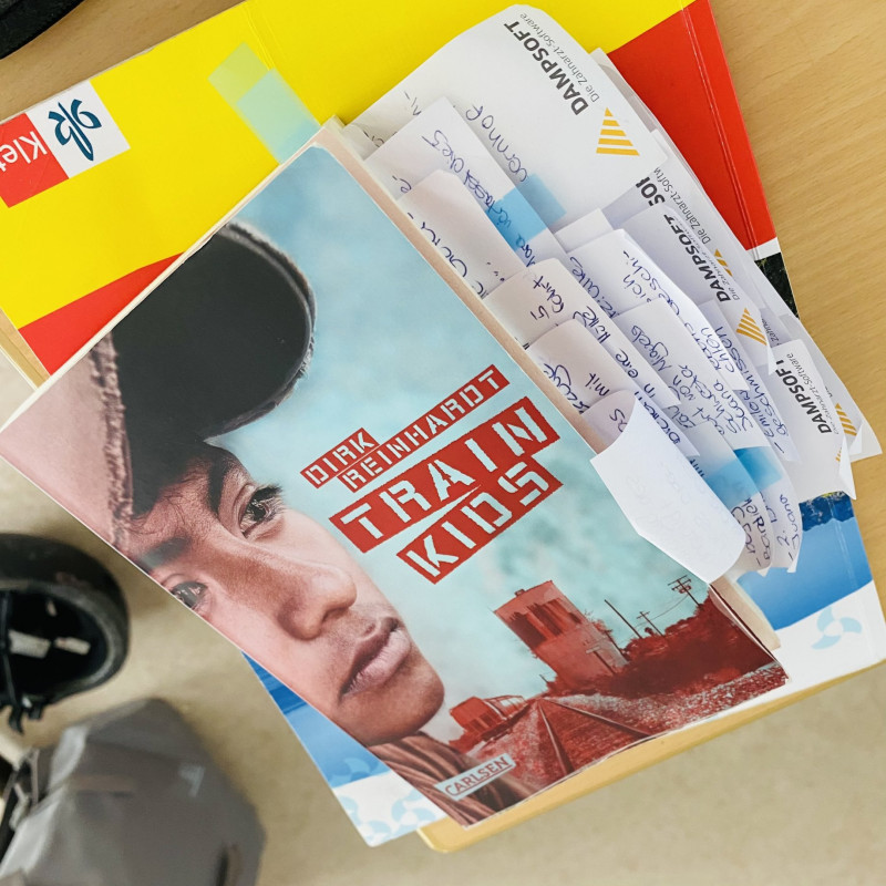 Für die 7a stand als letztes Thema vor den Sommerferien 2023 noch das Lesen eines Jugendbuches auf dem Plan. Angeregt durch die Autorenlesung von Dirk Reinhardt im eigenen Haus, in unserer Elsa, wurde „Train Kids“ ausgewählt.