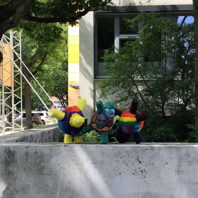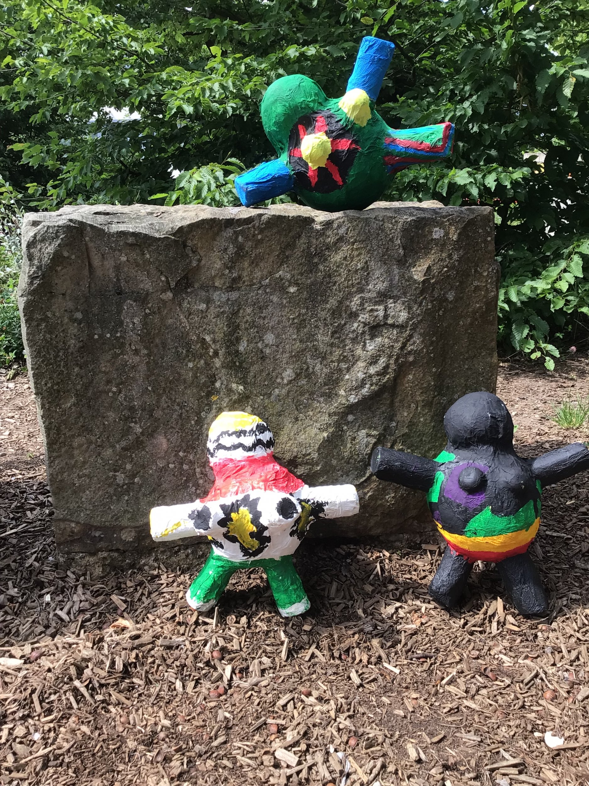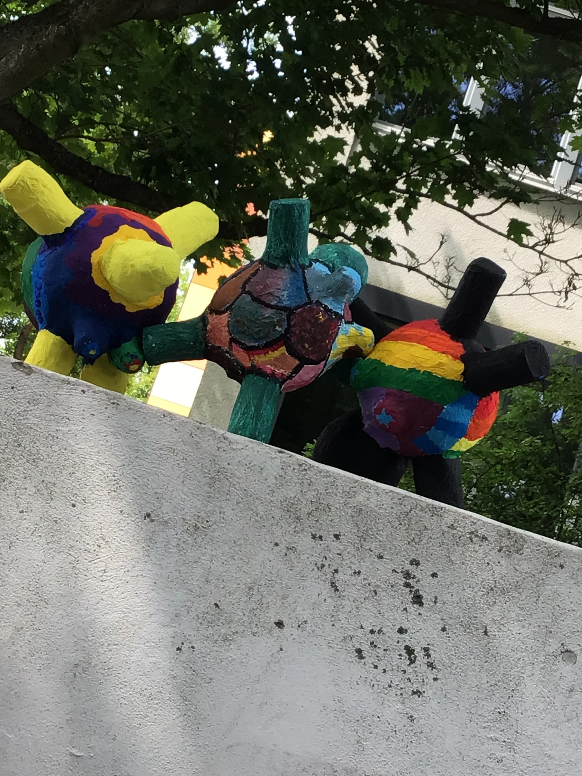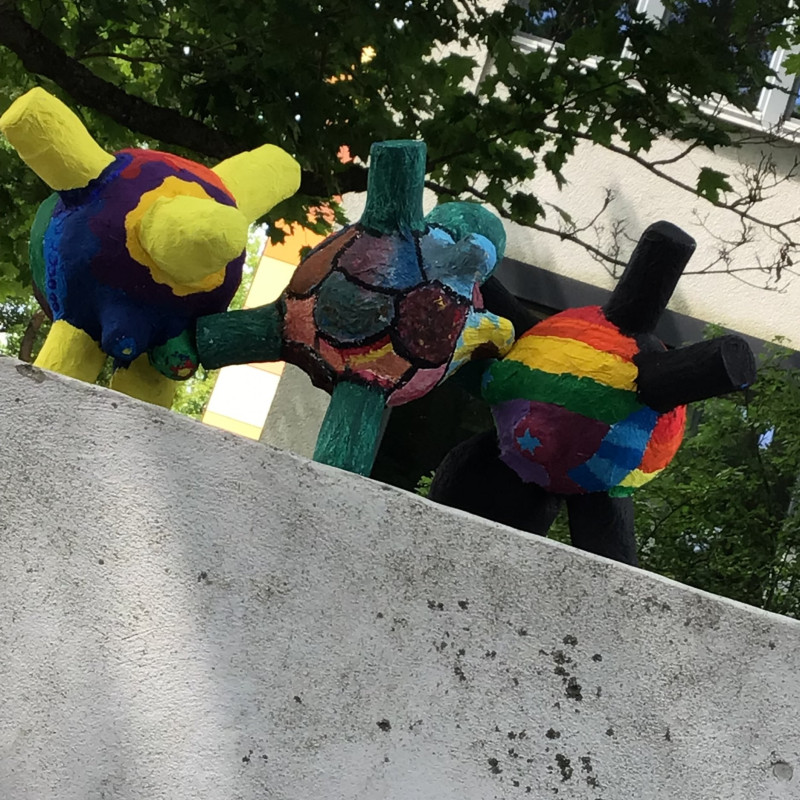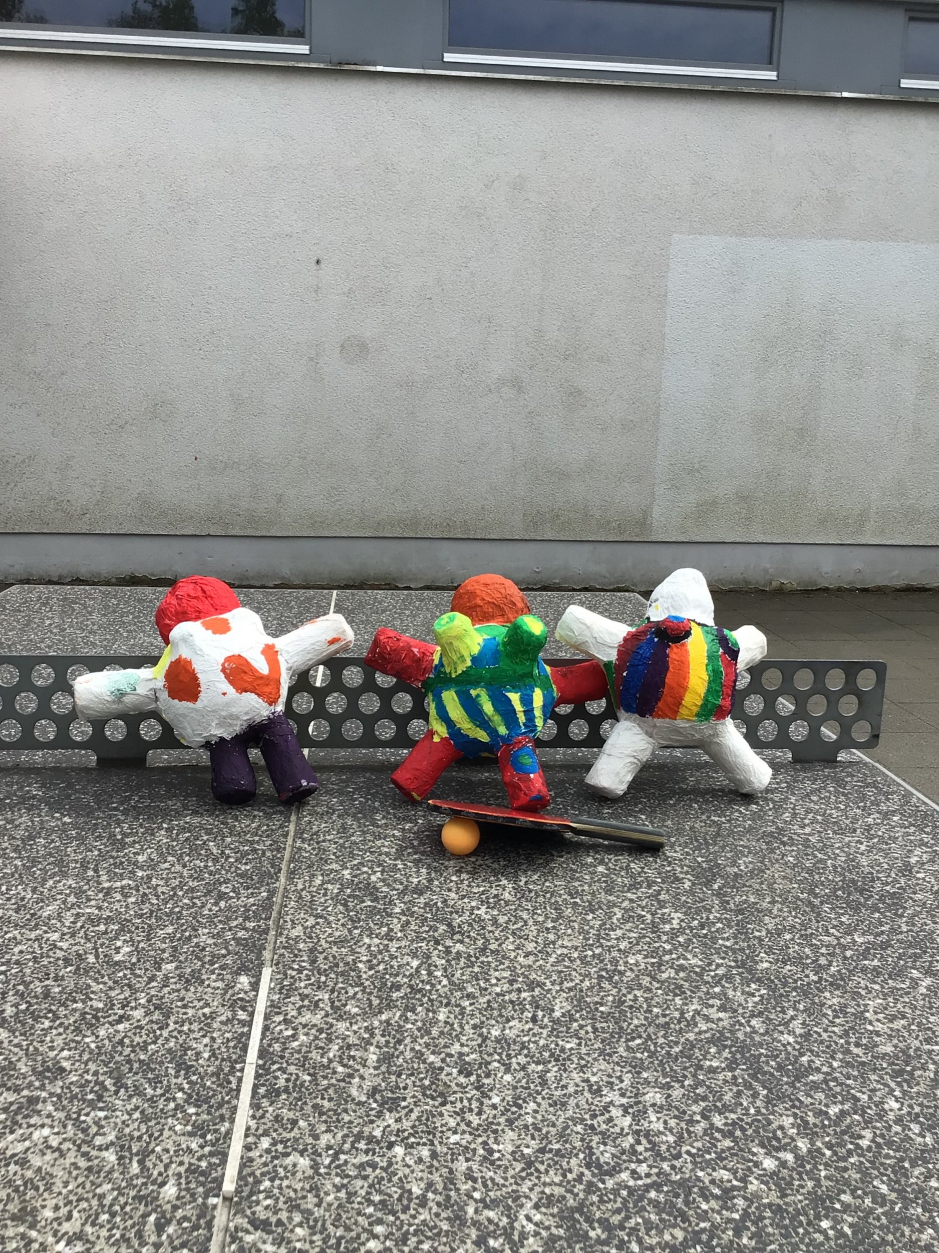 Die 6F hat sich im Kunstunterricht mit Kleister und Farbe am Modellieren von Nanas versucht und – wie wir finden – erfolgreich gemeistert. Die Nanas, Sophie, Charlotte und Caroline, der französischen Künstlerin und Ehrenbürgerin Hannovers Niki de Saint Phalle dienten der 6F als Vorlage. Einige unserer Elsa Nanas haben auch den Weg aus dem K-Trakt in die Pausenhalle oder auf den Pausenhof geschafft und sich die verrücktesten Plätze gesucht. Hier seht ihr einige der bunten Damen in Aktion.