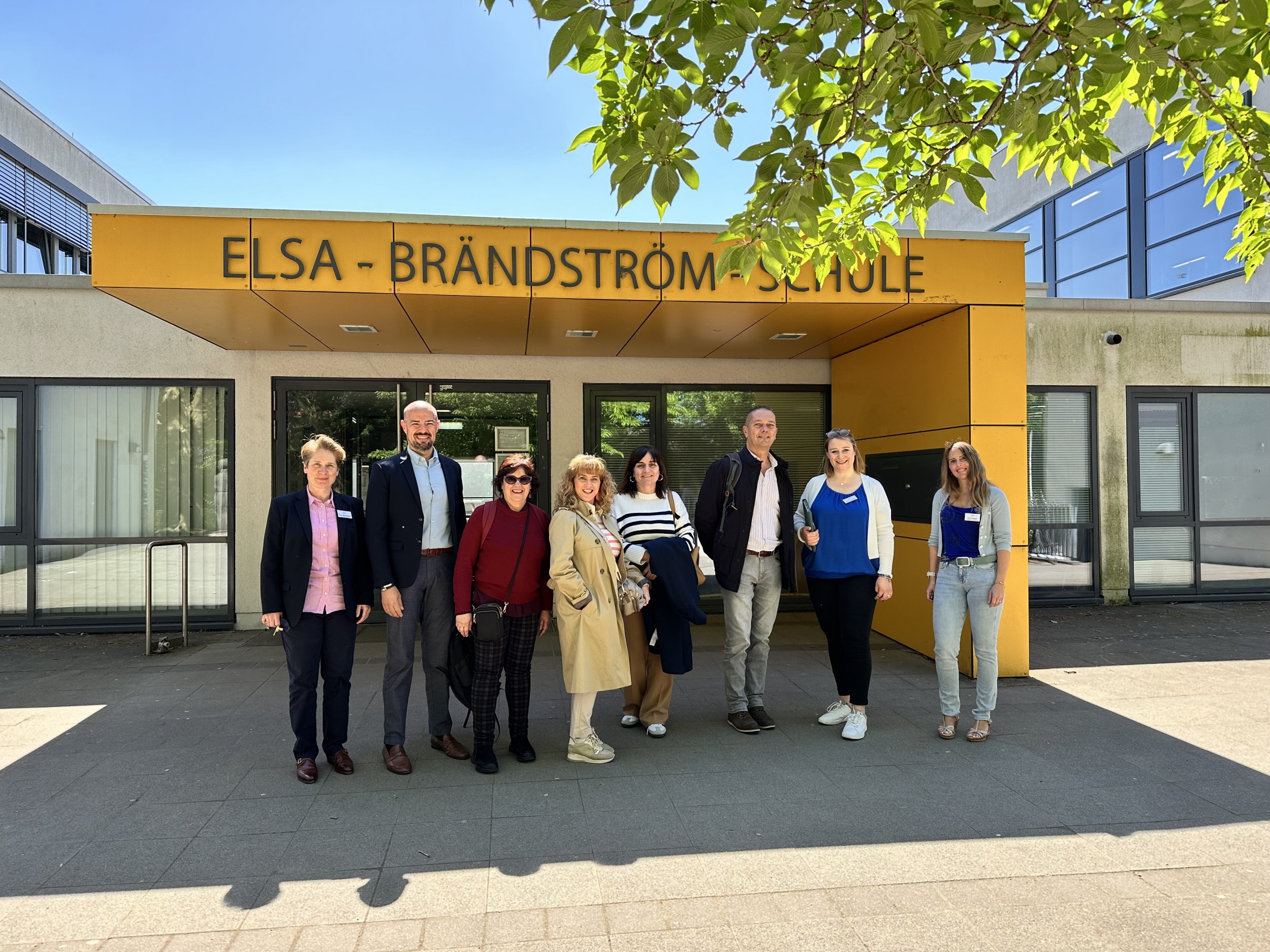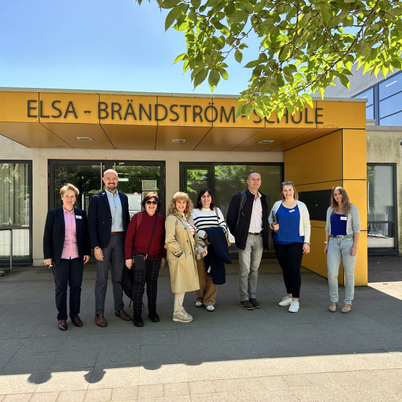 5 Dezernent:innen aus Gran Canaria durften wir bei kanarischen Wetterbedingungen an unserer Elsa begrüßen. Isabel Alegre, Víctor Guedes, Mely Díaz, Francisco Perdomo und Auxi Farias haben sich die Elsa angesehen und die Besonderheiten unserer Schule kennen gelernt. Neben der Besichtigung des Schulgeländes und einem regen Austausch über das deutsche und spanische Schulsystem standen ein Besuch im Spanischunterricht und der Orchesterprobe auf dem Programm. Das Programm begleiteten Frau Disque, Frau Heimbrock und Herr Kersten. Wir hoffen auf ein baldiges Wiedersehen und eine Stärkung unseres Erasmus+-Programms.