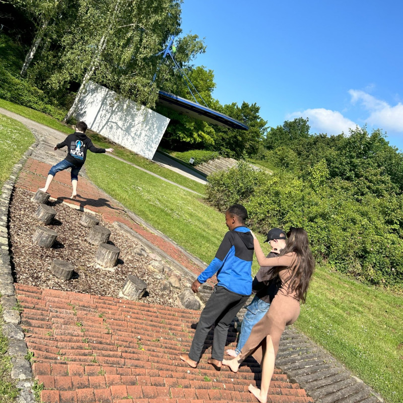Ein weiteres beeindruckendes Ziel war der Park der Sinne in Hannover. Dieser einzigartige Erlebnispark bietet eine Vielzahl von Stationen, die alle Sinne ansprechen und den Forscherdrang der Kinder wecken. Unsere Schülerinnen und Schüler hatten die Gelegenheit, Naturphänomene hautnah zu erleben und mit allen Sinnen zu erforschen. Ob beim Barfußpfad, dem Klangspielplatz oder der Kräuterspirale – überall gab es Spannendes zu entdecken und zu erleben. Der Park der Sinne fördert das Verständnis für die Natur und regt dazu an, die Umwelt bewusst wahrzunehmen und zu schätzen.