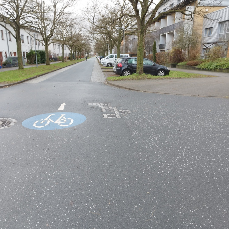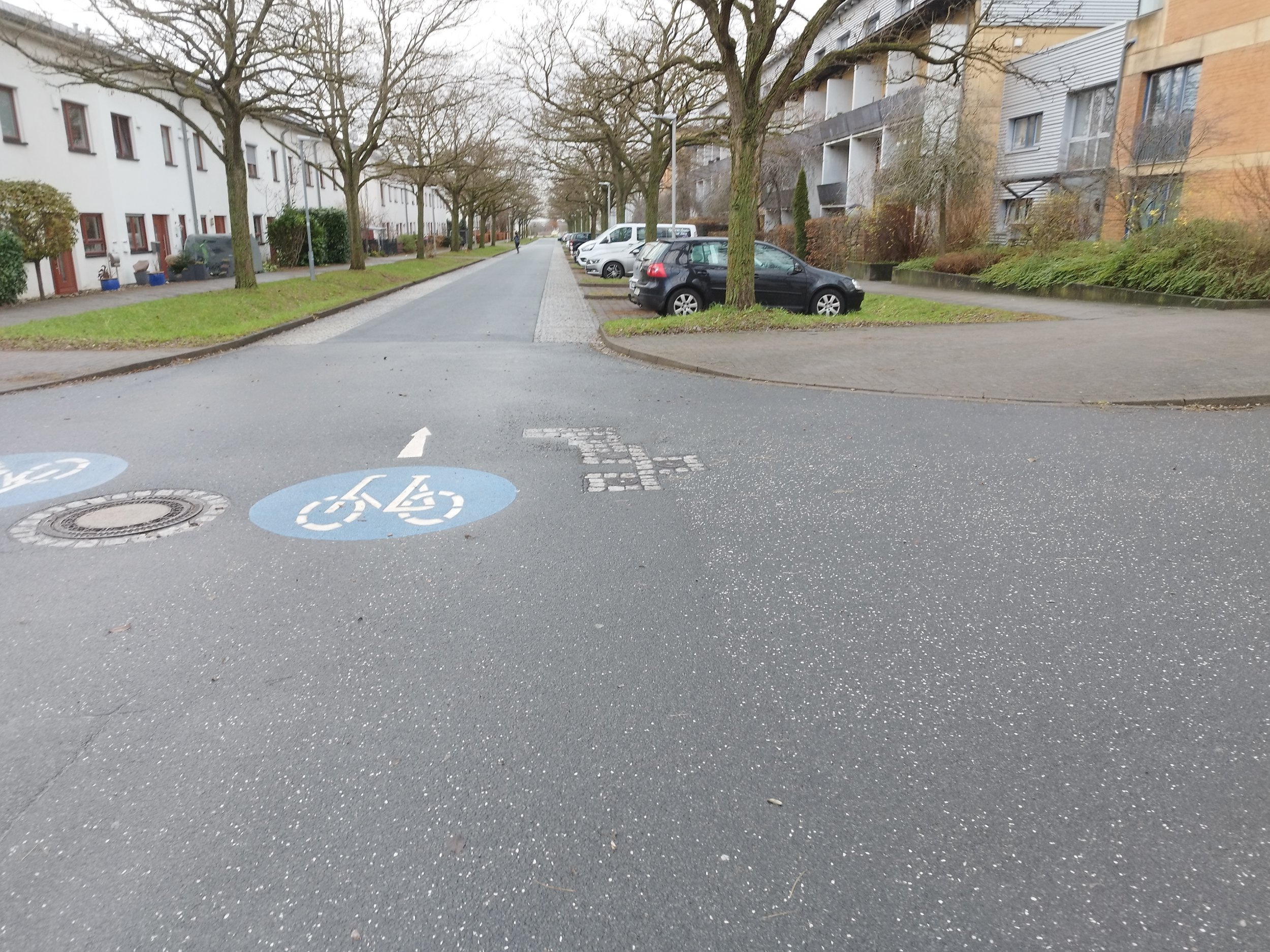 Auf unserem kleinen Rundgang haben wir gelernt, dass die Grünflächen an beiden Straßenseiten eigentlich Mulden-Rigolen-Systeme sind. Diese sind für die Ableitung von Regenwasser in nahegelegene Sammelbecken zuständig. Auch in den Innenhöfen der Mehrfamilienhäuser im Kronsbergviertel wurde bei der Bauplanung darauf geachtet, dass das Regenwasser gut abfließen und lokal gesammelt werden kann.