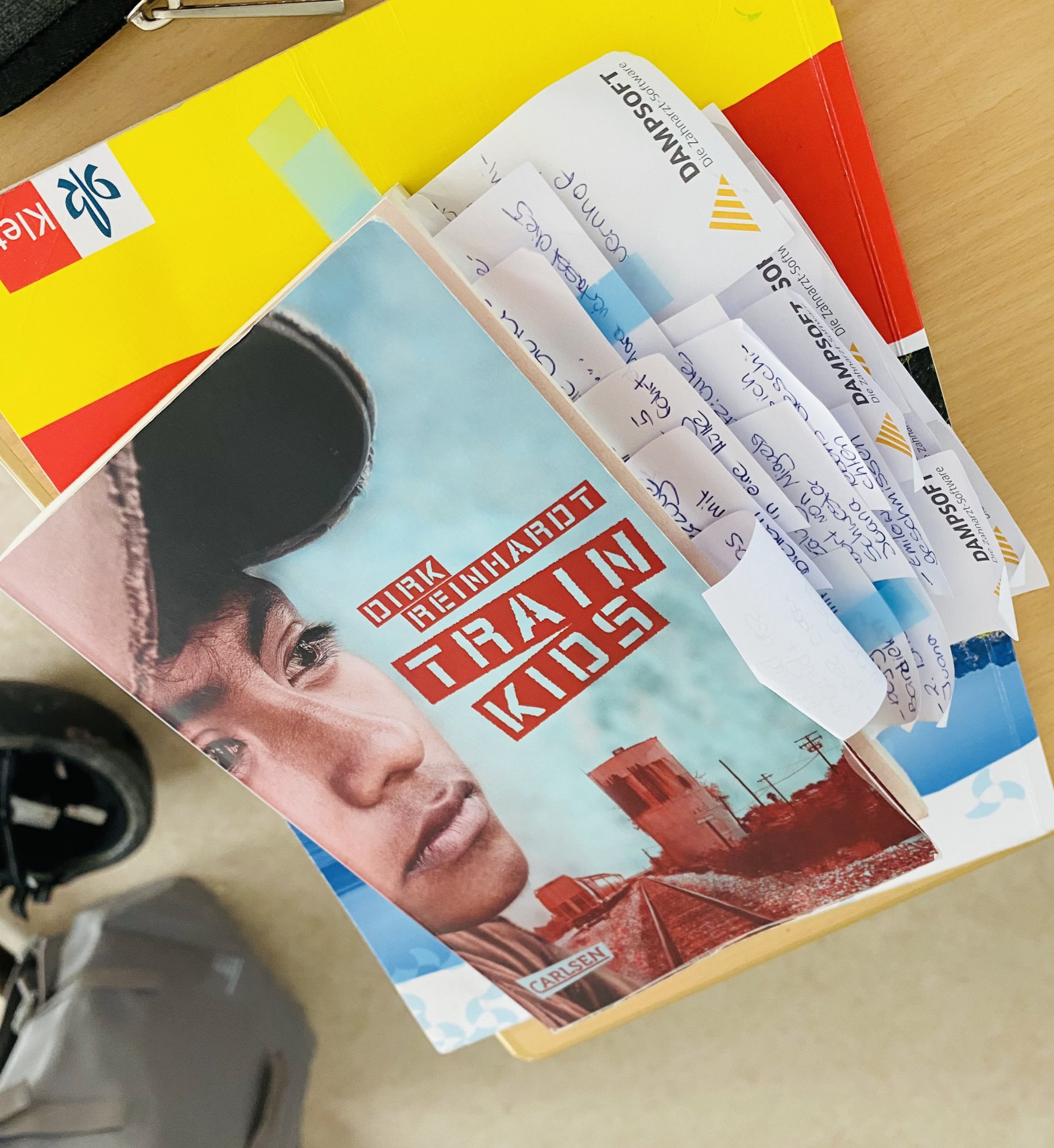 Für die 7a stand als letztes Thema vor den Sommerferien 2023 noch das Lesen eines Jugendbuches auf dem Plan. Angeregt durch die Autorenlesung von Dirk Reinhardt im eigenen Haus, in unserer Elsa, wurde „Train Kids“ ausgewählt.