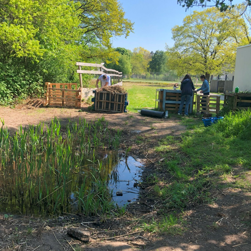 Rund um das Jahr arbeitet die Umwelt-AG im Schulgarten. Dieses Jahr sind das erste Mal Kartoffeln gepflanzt worden, eine Kräuterpyramide ist erstellt worden und die Zahl der Hochbeete wird wöchentlich mehr. Seit Februar hat die Umwelt-AG ein eigenes Gartenhäuschen und wird dort Regenwasser sammeln, um Gemüsepflanzen zukünftig bewässern zu können.