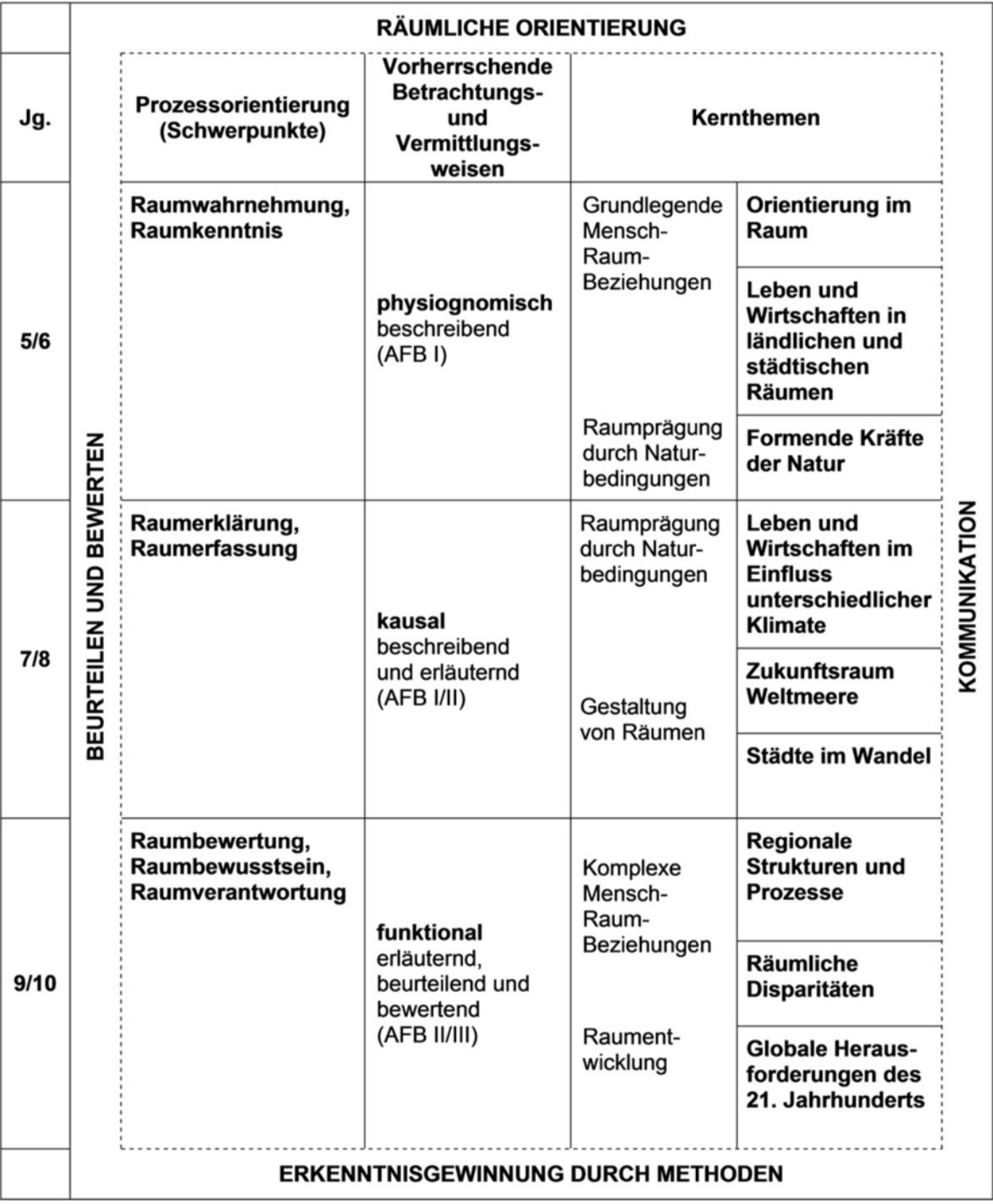 Geographische und geowissenschaftliche Phänomene und Prozesse wie Klimawandel, Erdbeben, Hochwasser und Stürme, Globalisierung, Disparitäten und Ressourcenkonflikte prägen unser Leben und unsere Gesellschaft heute auf vielfältige Art und Weise. Der Umgang mit diesen globalen und komplexen Entwicklungen erfordert eine Anpassung bisheriger Verhaltens- und Lebensweisen sowie neue Handlungsstrategien. Das Fach Erdkunde leistet hier seinen Beitrag durch die Entwicklung raumverantwortlichen Handelns. Durch die Untersuchung der o.g. Phänomene und Wechselwirkungen fördert der Erdkundeunterricht ein mehrperspektivisches, systemisches und problemlösendes Denken. Darüber hinaus schafft das Fach Erdkunde räumliche Orientierung. Neben allgemeingeographischen Kenntnissen sollen v.a. die regionalgeographischen Kenntnisse über Regionen, Staaten und -gruppen gefördert werden.